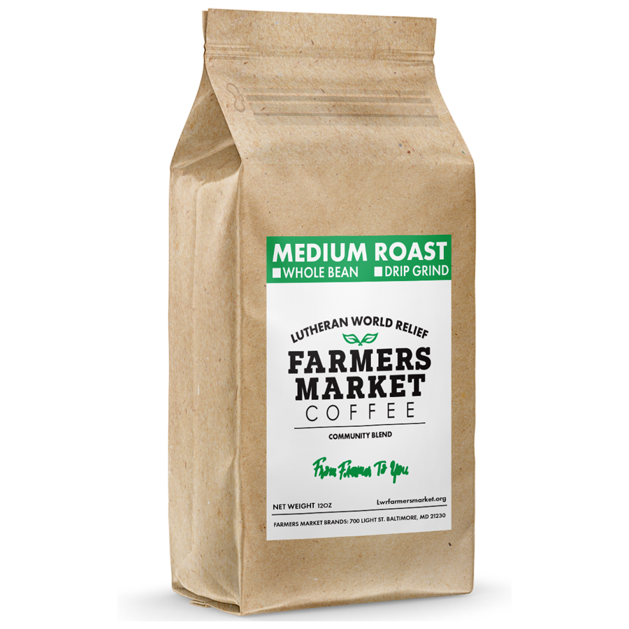 Just like a local farmers market, LWR Farmers Market Coffee connects you and the farmers who grow your coffee. Lutheran World Relief has partnered with Farmers Market Brands to produce this delicious line of coffee sourced directly from farmers who participate in LWR projects. With LWR Farmers Market Coffee, farmers aren't just suppliers of coffee beans, they are partners in the coffee business. Farmers receive a more than fair, stable, and predictable, up-front price for their beans, along with a share of the profits from the sale of their coffee. Thank you for supporting farmers and their families!